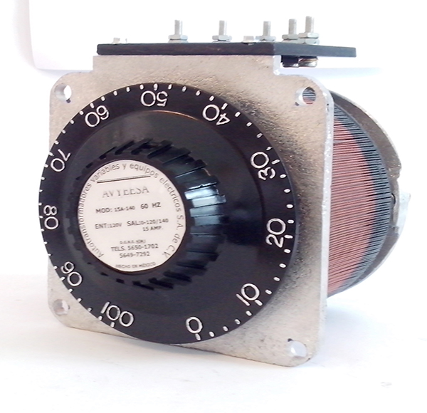 Entrada: 120 V.C.A Salida:0-140 V.C.A Amperes: 15